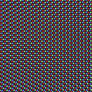 そーいえば昔、テレビのブラウン管を近くで見ると、この三色が規則的に並んでいました。